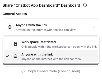 Dashboards are designed for collaboration. Share your dashboards with team members to provide them with valuable insights, or use shared dashboards as a discussion point in team meetings and strategy sessions. You can also change the access to public or internal.